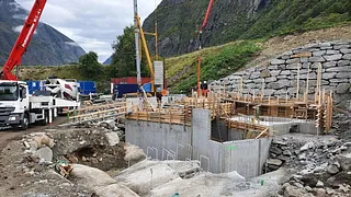 Vi leverer design og teknisk løsning på inntak og betongarbeid. Vi gjør fundament- og armerings-tegninger, samt støper betonginntak.